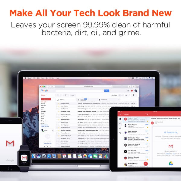 Features: Safe For All Screens & Devices Fingerprint Resistant Eliminates Smudges Air/Dust Blower Cleaning Cotton Swabs Soft Bristle Brushes Retractable Cleaning Brush Proprietary Formula Non-Toxic Alcohol & Ammonia-Free Premium Microfiber Cloth Specifications: Bottle Material: Acrylonitrile Styrene (AS) Plastic Bottle Dimensions: 0.74 x 3.70 in. | 0.3 FL OZ (10ml) Cloth Material: Polyester + Polyamide Cloth Dimensions: 6.30 x 7.08 in. Limited One Year Warranty Package Contents: Air/Dust Blower 15 Cleaning Cotton Swabs 2 Small Cleaning Brushes Retractable Cleaning Brush 10ml Cleaning Spray Bottle Microfiber Cleaning Cloth
