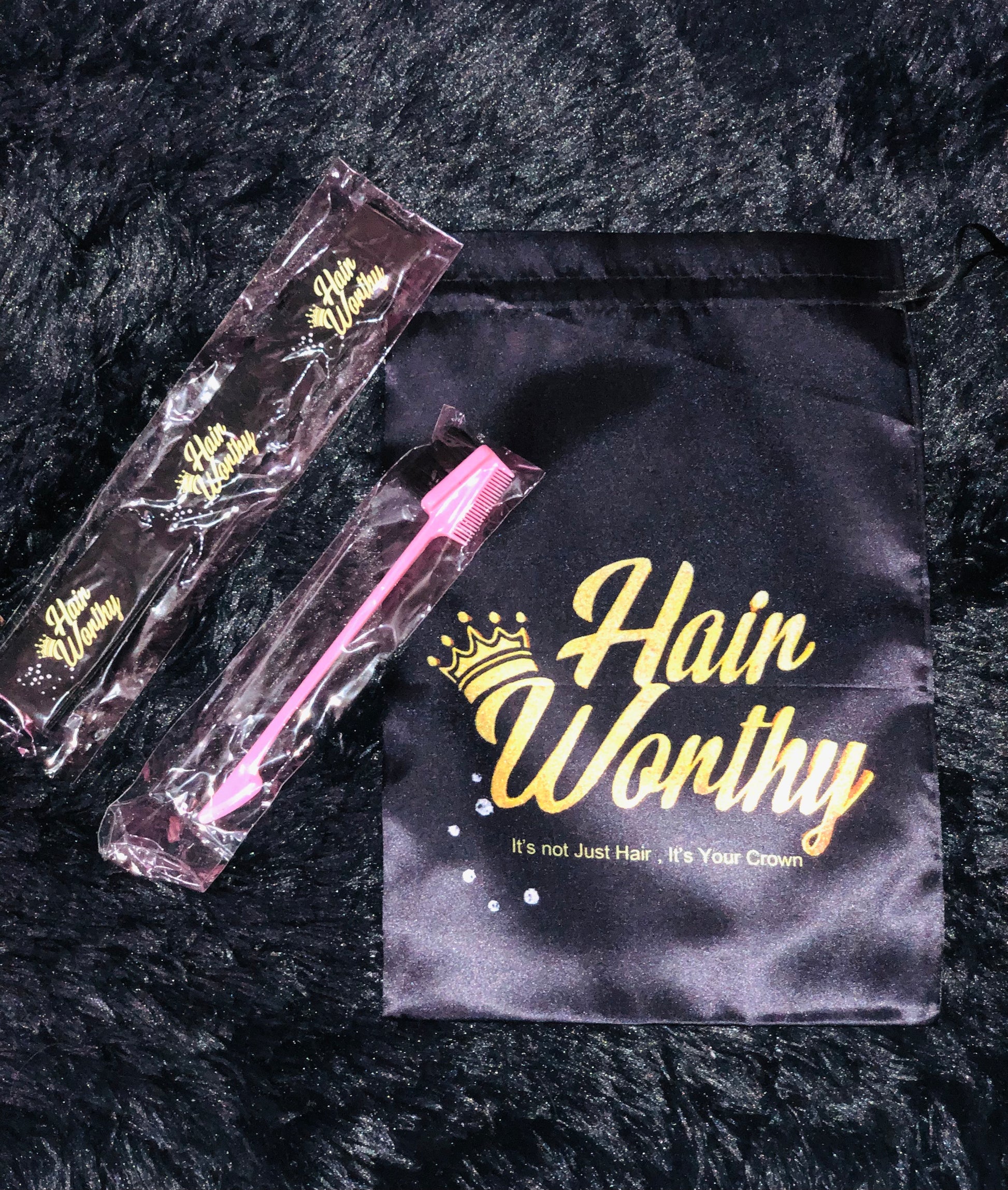Wig Care Kit Includes : 1 Silk Wig Storage Bag for your wig, 1 Edge Brush Double Sided, 1 Melt Band Velcro.